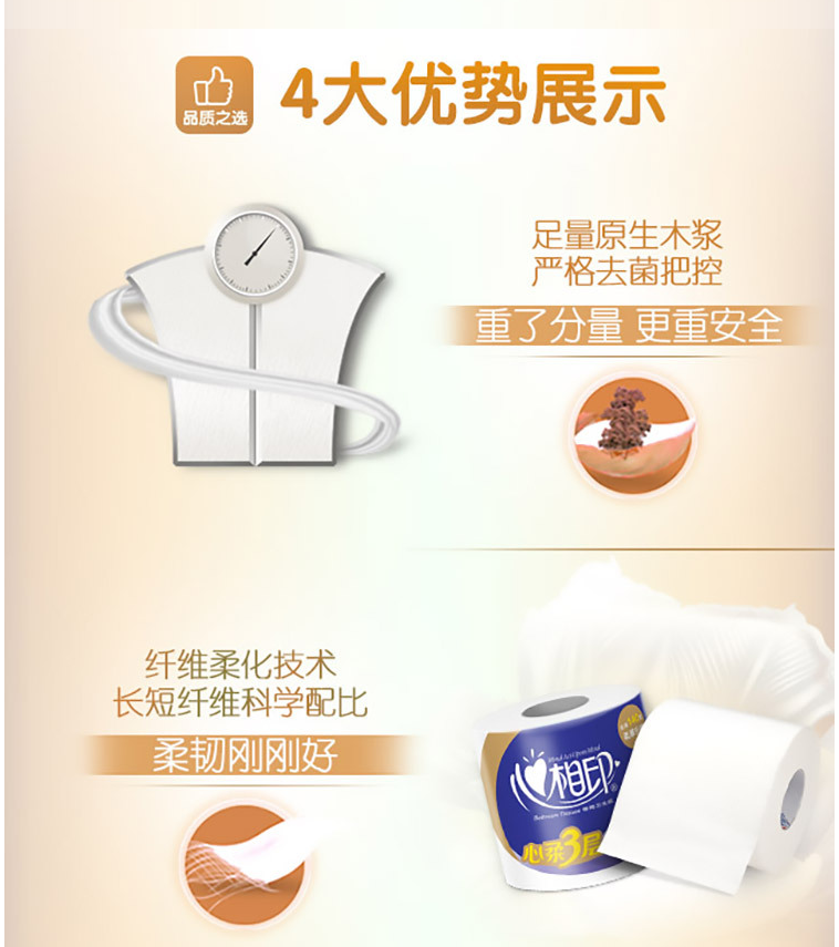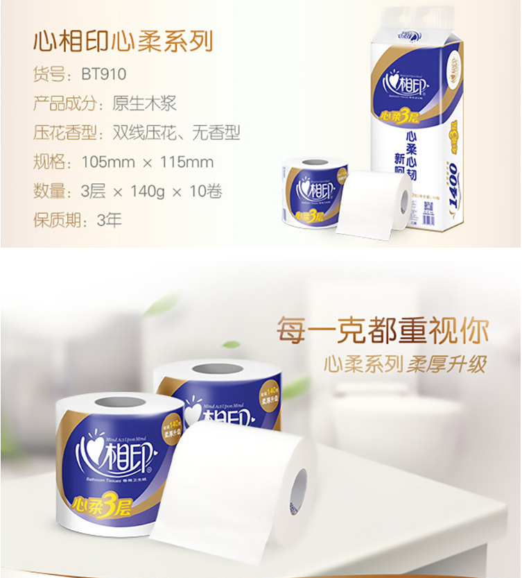 商品名稱(chēng):心相印卷紙三層卷筒空芯衛(wèi)生紙巾1400g家用公用廁紙一提10卷裝心相印卷紙BT910