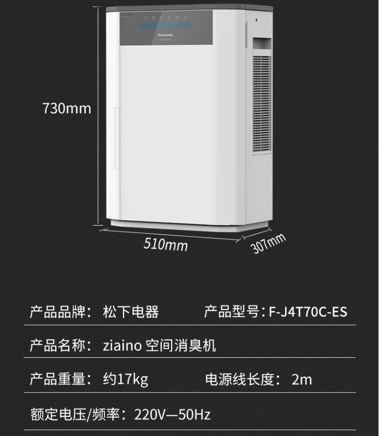 商品名稱:松下(Panasonic)ESziaino次亞諾商用空間消臭機家用醫(yī)院去異味凈化空氣凈化器 F-J4T70C-ES