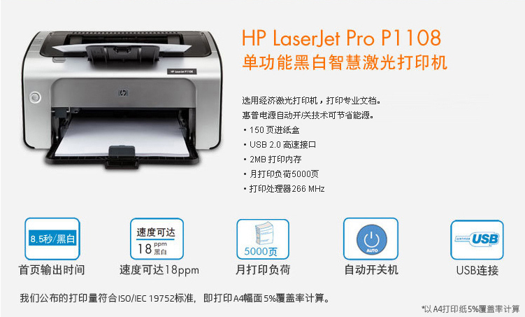 商品名稱:惠普(HP) P1108黑白激光打印機(jī) A4打印 小型商用打印