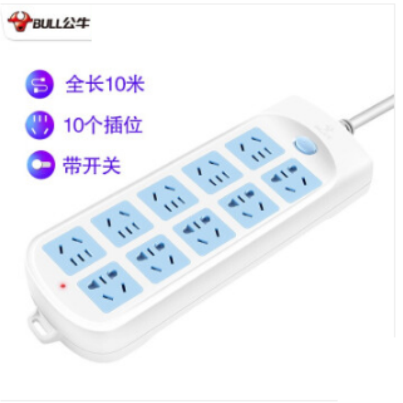商品名稱:公牛(BULL) GN-605新國(guó)標(biāo)插座(10位總控10米)公牛插座GN-605