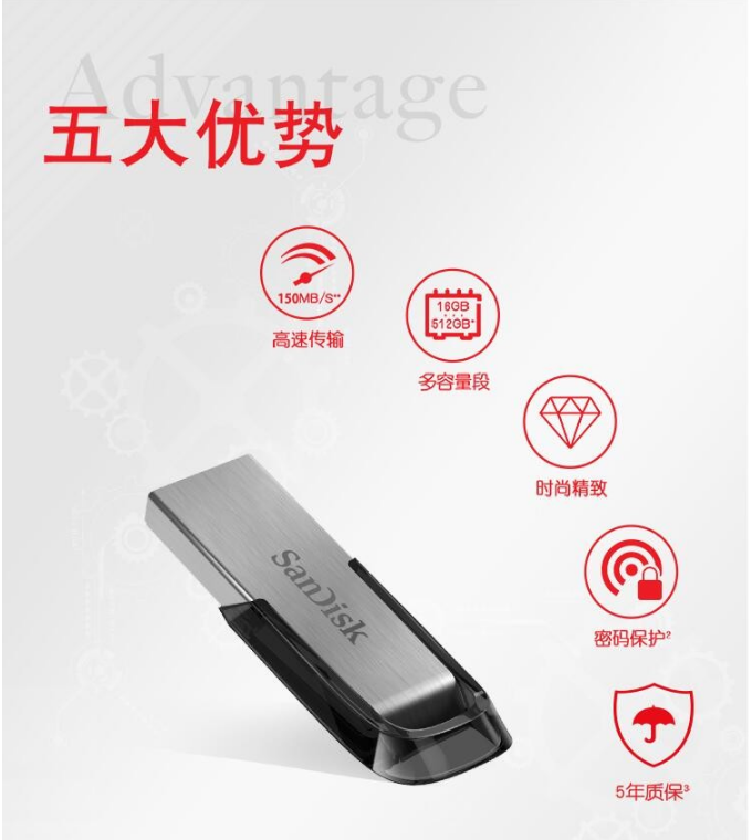 商品名稱:閃迪(SanDisk)U盤 CZ73酷鑠 USB3.0讀速150MB/s 閃迪金屬外殼128GBCZ73酷鑠
