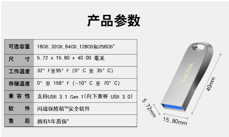 商品名稱:閃迪(SanDisk)USB3.1高速U盤CZ74酷奐銀色金屬外殼USB3.1 閃迪金屬U盤64G