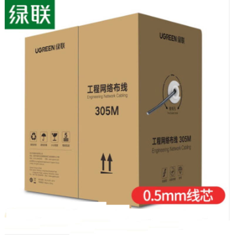 綠聯(lián)(UGREEN)超五類網(wǎng)線【工程版0.5mm純銅線芯】CAT5e超5類8芯雙絞箱線 家裝寬帶非屏蔽監(jiān)控305米 60547