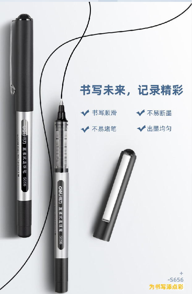 商品名稱:得力(deli)直液式走珠筆考試辦公中性筆簽字筆水筆12支裝 0.5mm 子彈頭黑色12支裝 得力直液式走珠筆S656