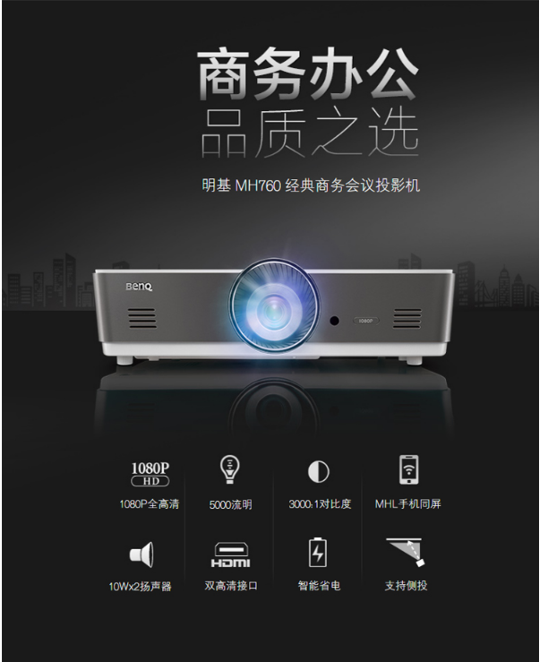 商品名稱:明基(BenQ)MH760投影儀辦公 高清1080P高亮5000流明大型工程會(huì)議投影機(jī) 高亮工程款 含120英寸電動(dòng)遙控幕布明基MH760投影儀辦公