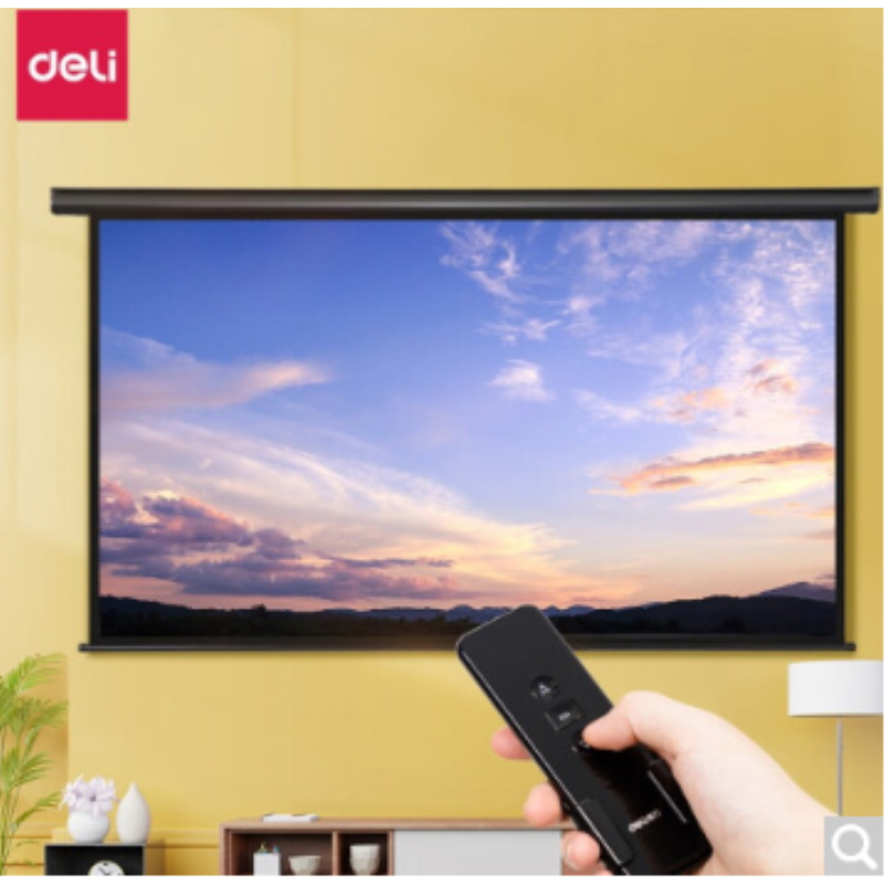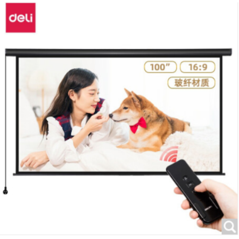 得力(deli)幕布100英寸 16:9 白玻纖遙控電動投影幕布投影布(標配遙控器) 家用投影儀商務(wù)辦公幕布50450