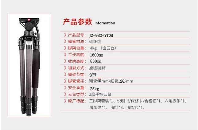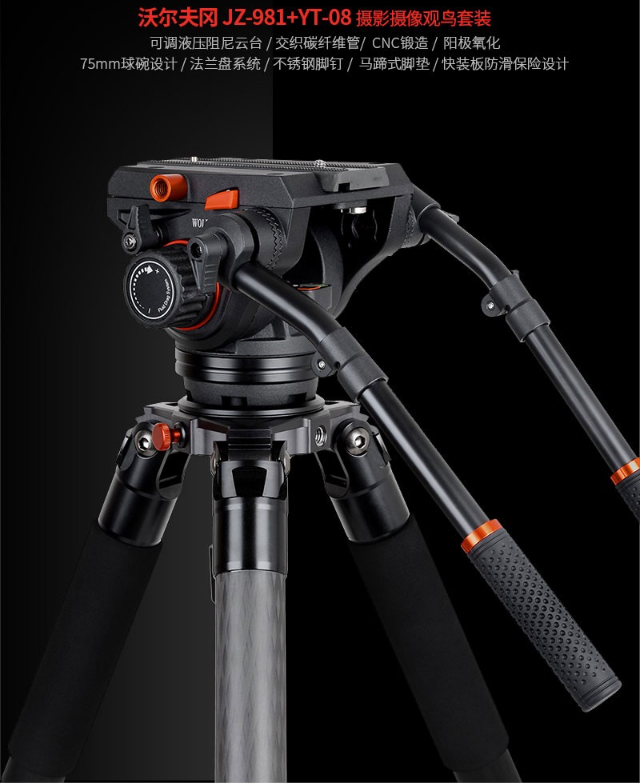 商品名稱:沃爾夫?qū)╓OLFGANG)JZ-982+YT08 碳纖維三腳架雙手柄液壓阻尼云臺碳纖維套裝3節(jié) 承重25kg 沃爾夫?qū)_架JZ-982