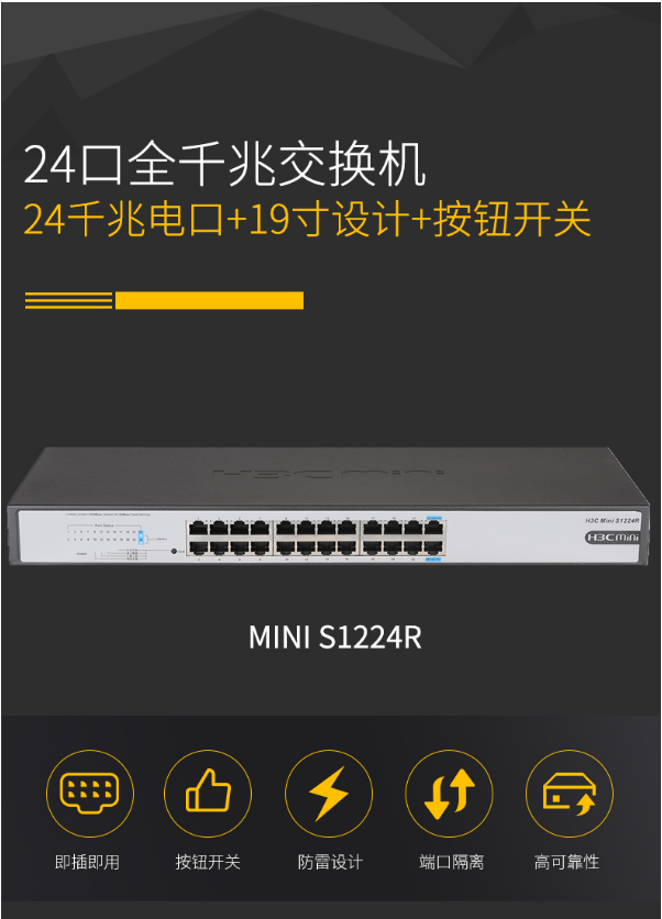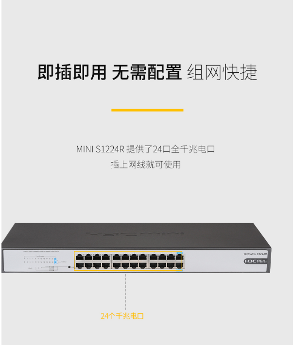 華三 (H3C) 24口全千兆交換機MINI S1224R 可上機架即插即用華三24口千兆交換機MINIS1224R