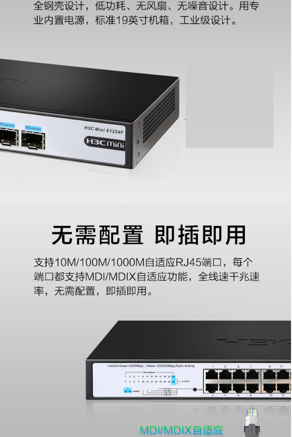 華三(H3C)Mini S1224F 24千兆電口+2千兆光口非網(wǎng)管機架式企業(yè)級網(wǎng)絡(luò)交換機 網(wǎng)線分線器 分流器華三千兆交換機MiniS1224F