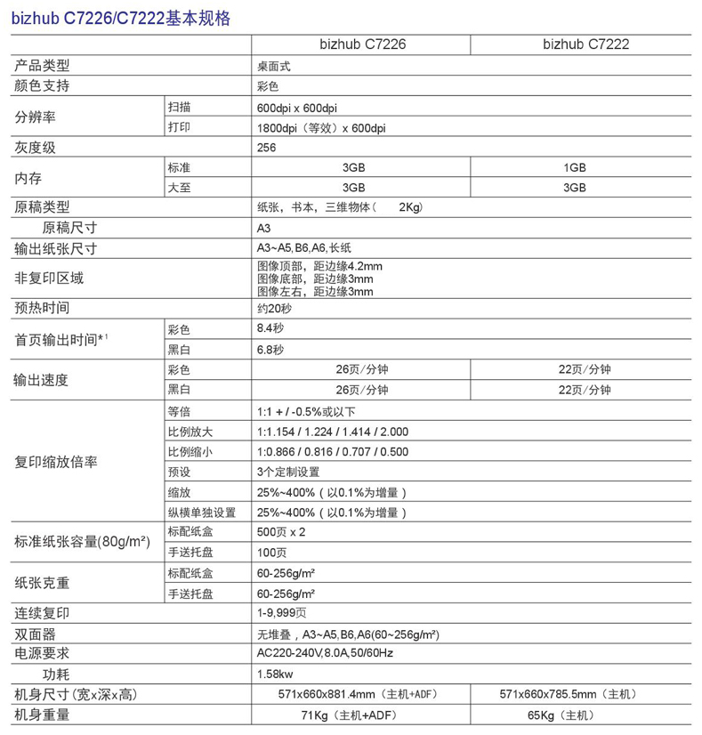 商品名稱:柯尼卡美能達(dá)C7222多功能一體機(jī)A3 A4彩色激光多功 能一體機(jī) C7222(自動輸稿器+雙層紙盒)