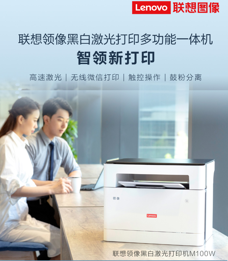 聯(lián)想(Lenovo)領像M100W 黑白激光無線WiFi打印多功能一體機 辦公商用家用(打印 復印 掃描)