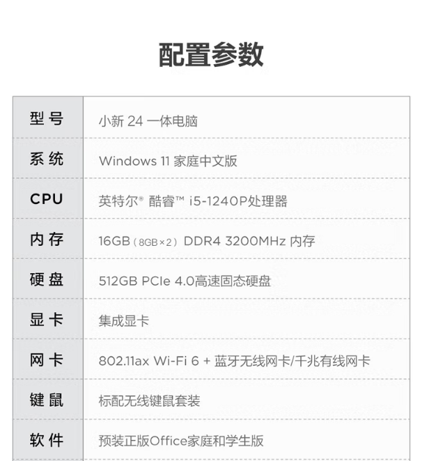 商品名稱:聯(lián)想(Lenovo) AIO520-24 臺式計算機 小新一體臺式機電腦23.8英寸(12代 i5-1240P 16G 512G SSD  win11)白色