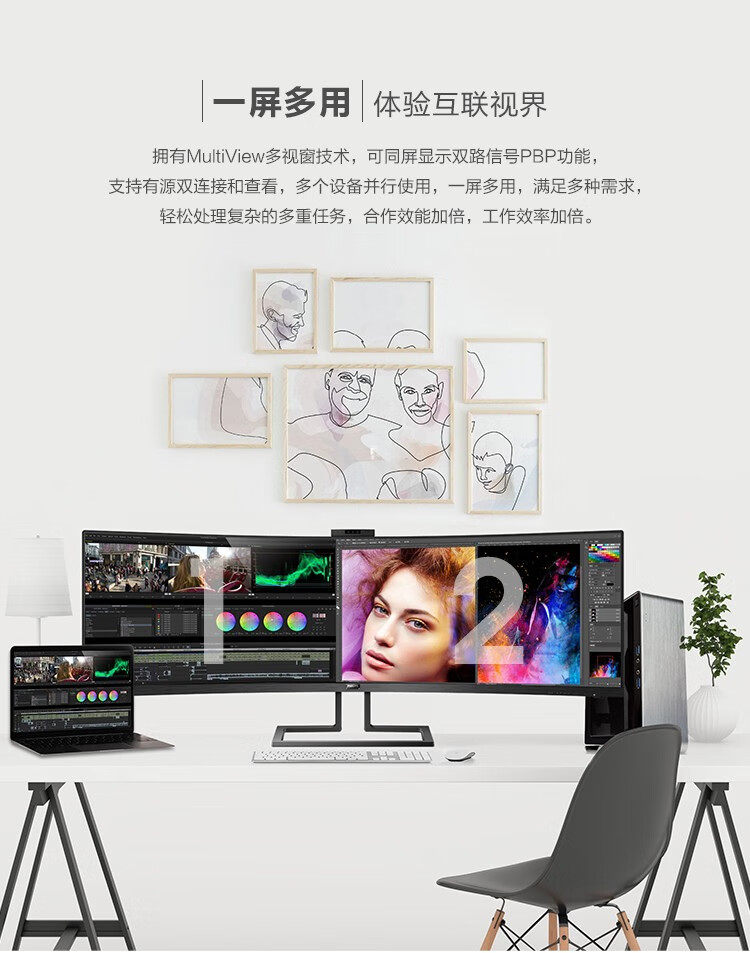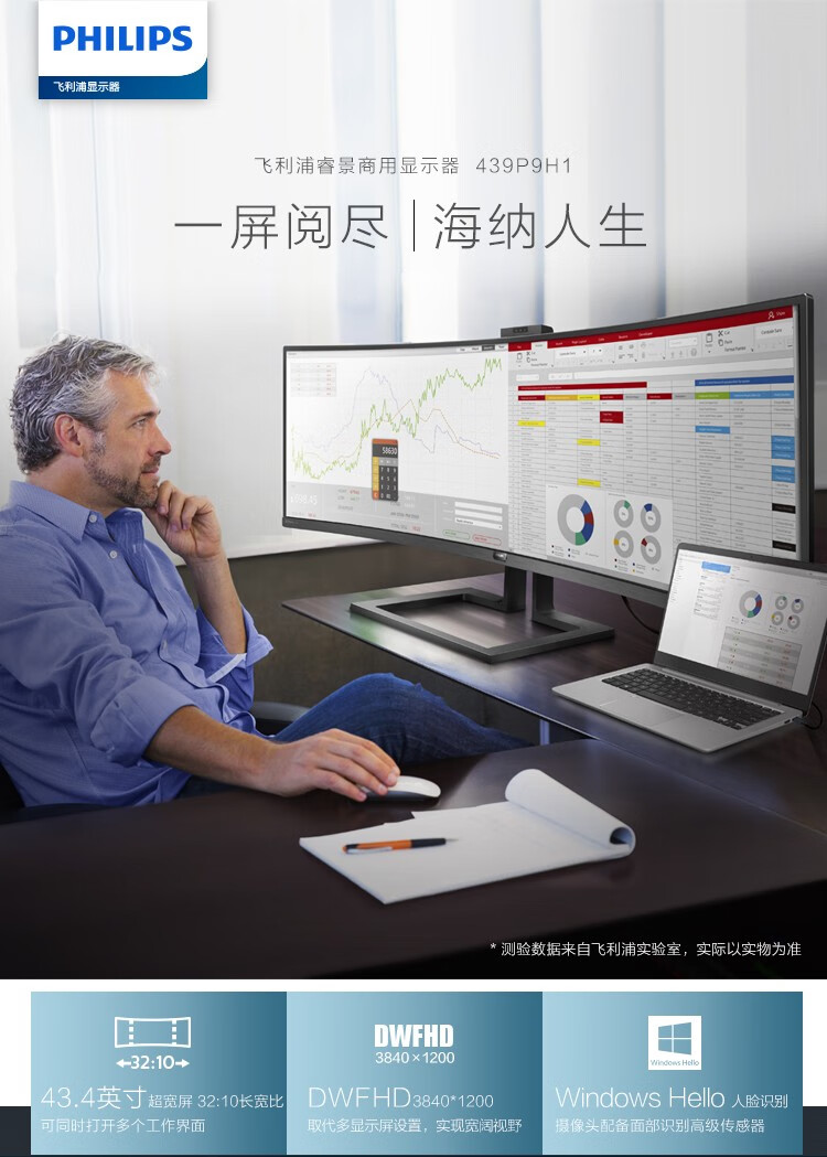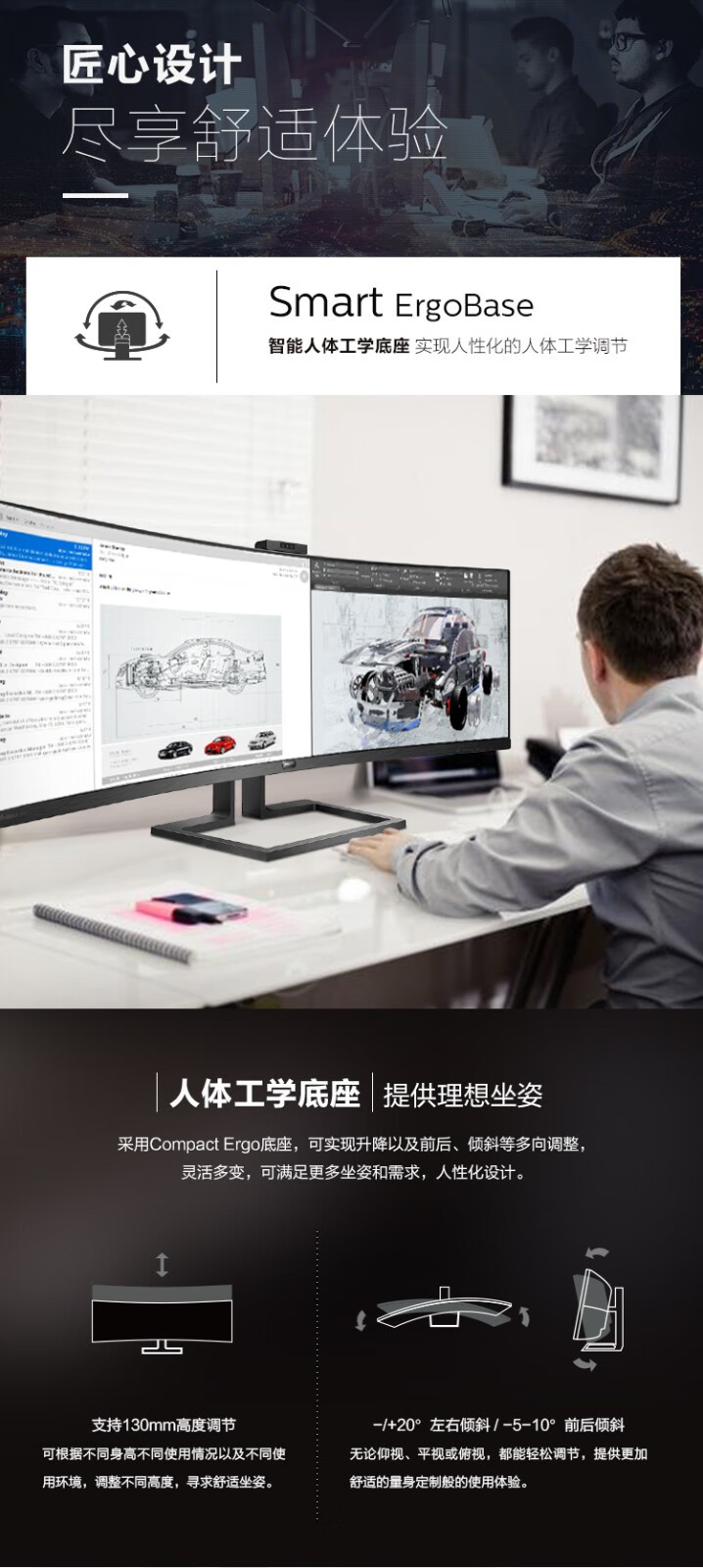 商品名稱:飛利浦(PHILIPS)499P9H1 顯示器 49英寸32:9睿景超寬帶魚(yú)屏 HDR400 電腦顯示器 顯示屏