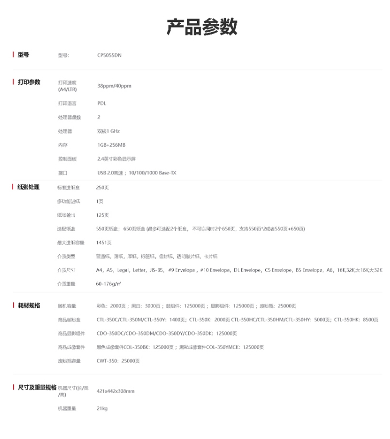 商品名稱:奔圖(PANTUM)CP5055DN A4彩色打印機(jī) A4彩色激光單功能打印機(jī)自動(dòng)雙面