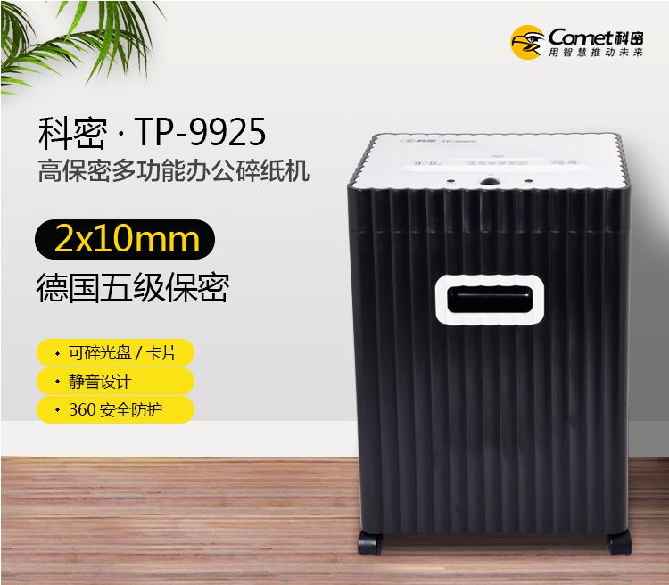 科密(COMET)碎紙機(jī) 顆粒高保密迷你靜音五級(jí)保密商用大容量碎紙粉碎機(jī)25L 5級(jí)黑色 科密碎紙機(jī)TP9925