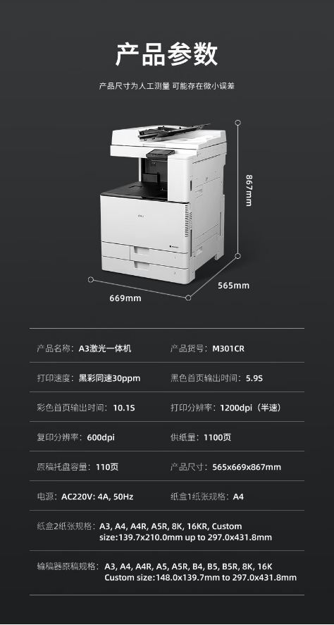 商品名稱:得力(deli) M301CR 復(fù)印機(jī) A3彩色多功能打印機(jī)復(fù)印機(jī)掃描機(jī)一體機(jī)自動(dòng)雙面彩色復(fù)印機(jī)