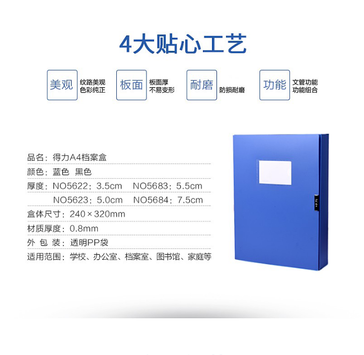 商品名稱:得力(deli)檔案盒塑料資料盒文件盒文件資料盒A4文件盒辦公用品藍(lán)色單只裝 5604 藍(lán)色 寬75mm