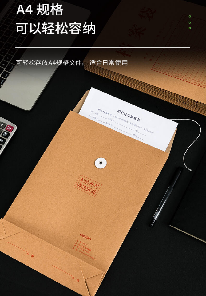商品名稱:得力(deli)10只A4混漿牛皮紙檔案袋200g側(cè)寬6cm辦公文件資料袋票據(jù)收納袋 得力(deli)檔案袋64101