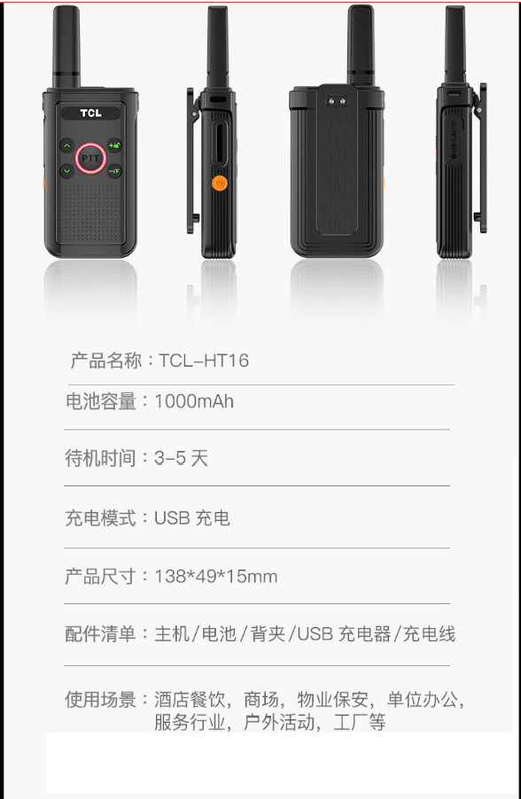 商品名稱:TCL對(duì)講機(jī)專業(yè)民用商用辦公工地醫(yī)院辦公酒店餐飲 戶外對(duì)講機(jī)無(wú)線手持對(duì)講手臺(tái) TCLHT16