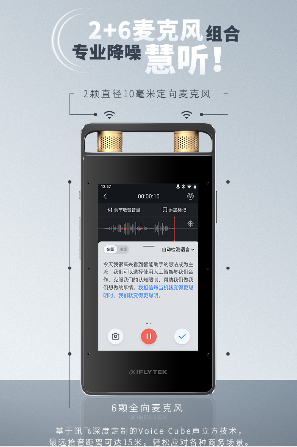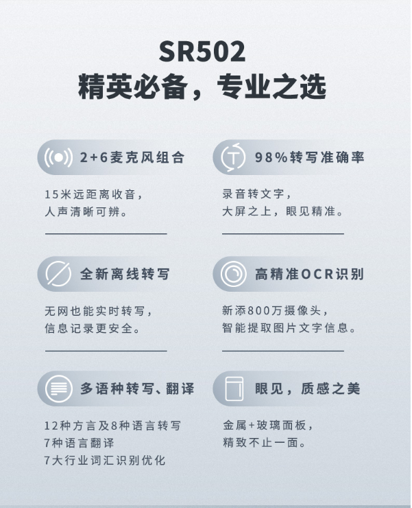 科大訊飛 (iFLYTEK)AI智能錄音筆 實(shí)時(shí)語音轉(zhuǎn)換 OCR識(shí)別文字中英互譯商務(wù)辦公16G儲(chǔ)存科大訊飛SR502