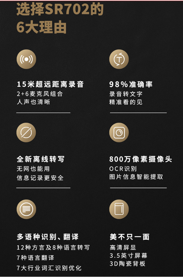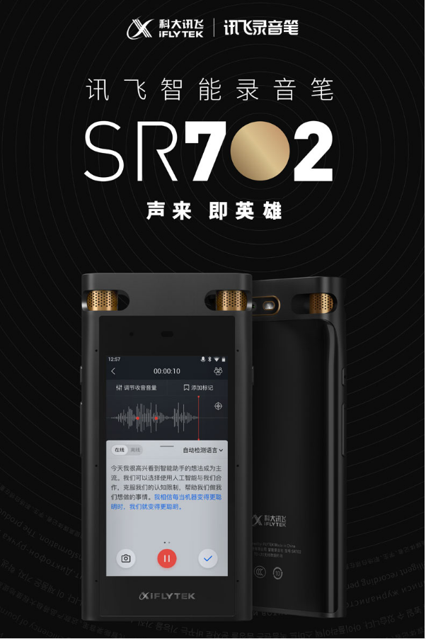 科大訊飛 (iFLYTEK)AI智能錄音筆 中英文邊錄邊譯 離線轉(zhuǎn)寫(xiě)保存 OCR提取圖片文本 32G儲(chǔ)存科大訊飛SR702
