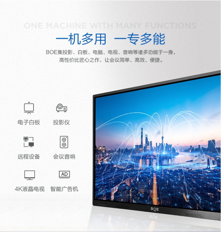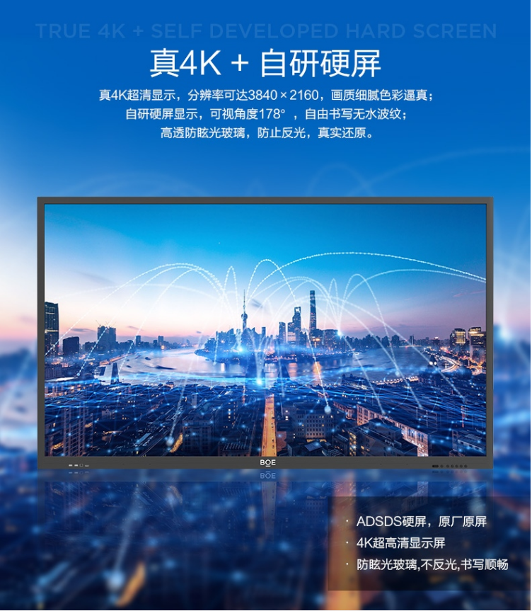 商品名稱:京東方BOE 會議平板 智能觸控會議一體機65英寸 無線投屏投影 視頻會議 商用顯示器 教學會議BWB65-GI4G