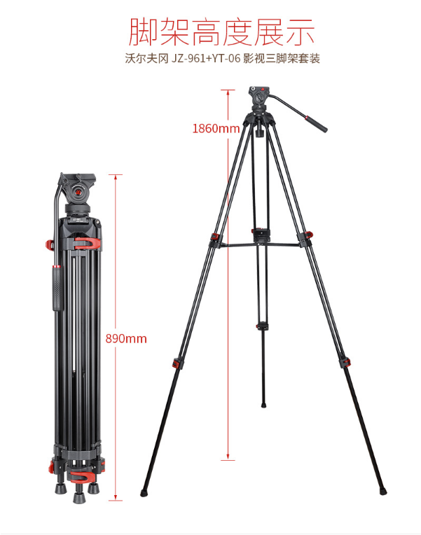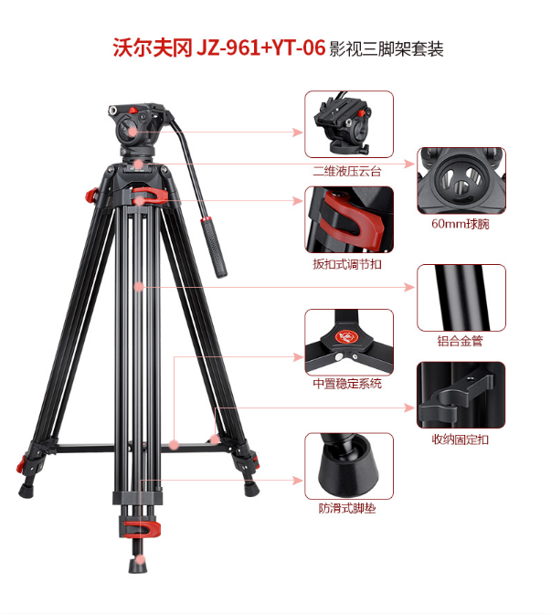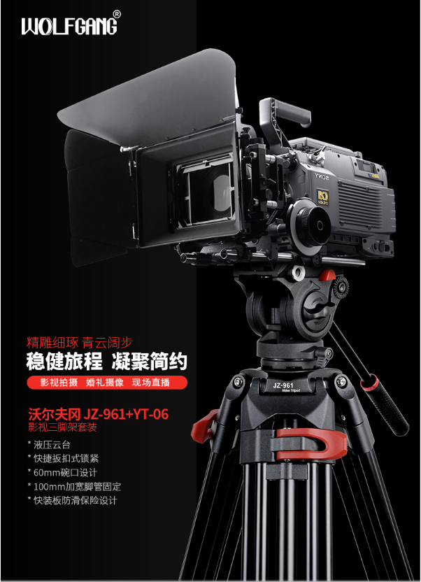 商品名稱:沃爾夫?qū)╓OLFGANG)JZ-961+YT-06 專業(yè)攝像機(jī)三腳架 二維液壓阻尼云臺(tái)支架 稱重6KG 沃爾夫?qū)鵍Z-961