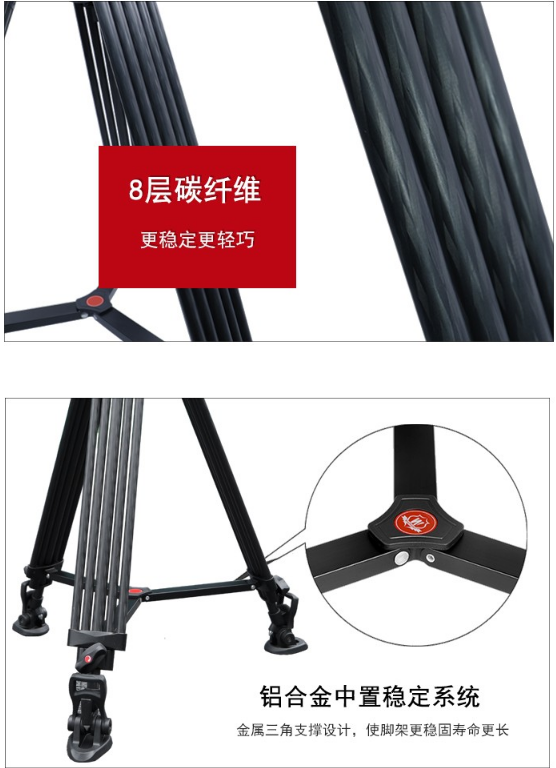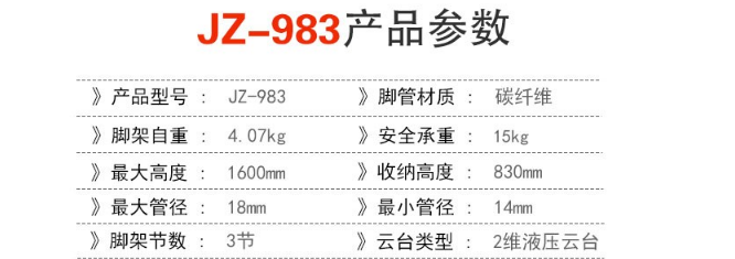商品名稱:沃爾夫?qū)╓OLFGANG)JZ-983+YT-06碳纖維三腳架液壓云臺(tái)三腳架攝像機(jī)單反攝影攝像 碳纖維三腳架沃爾夫?qū)鵍Z-983