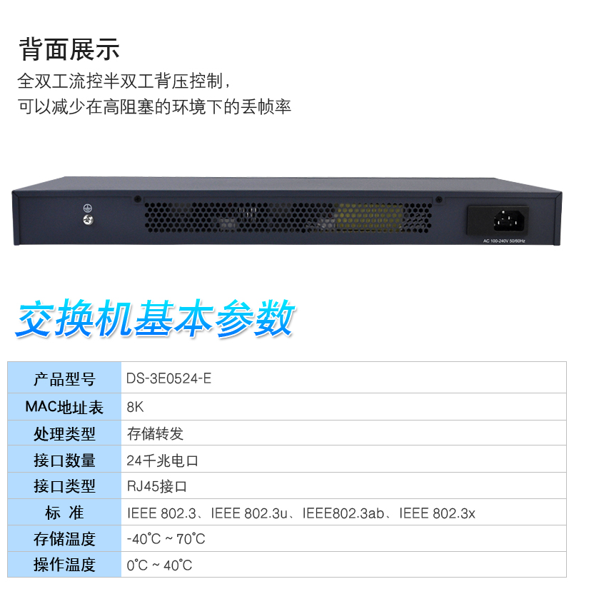 商品名稱:??低暻д妆O(jiān)控交換機(jī) 非網(wǎng)管網(wǎng)絡(luò)分線器 24口千兆 DS-3E0524-E