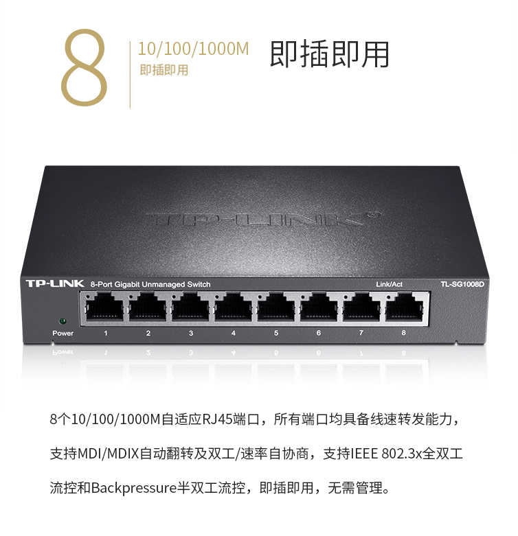 TP-LINK 8口千兆交換機(jī) 企業(yè)級(jí)交換器 監(jiān)控網(wǎng)絡(luò)網(wǎng)線分線器 TL-SG1008D