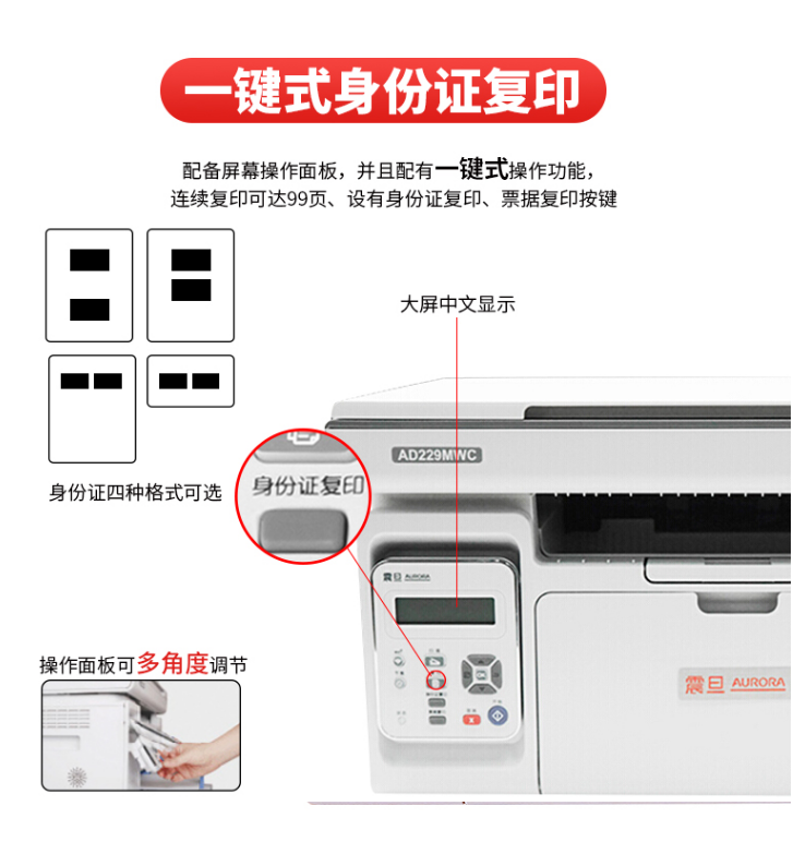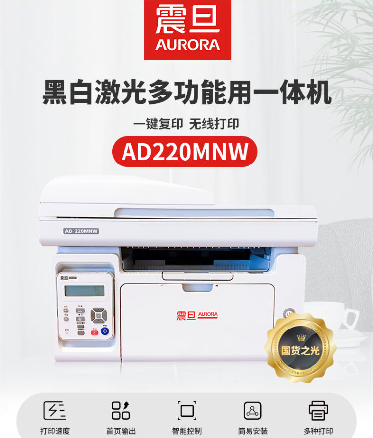 商品名稱:震旦(AURORA)AD220MNW 黑白激光多功能一體機(jī)(復(fù)印/打印/掃描) A4打印機(jī) 家用辦公打印機(jī)