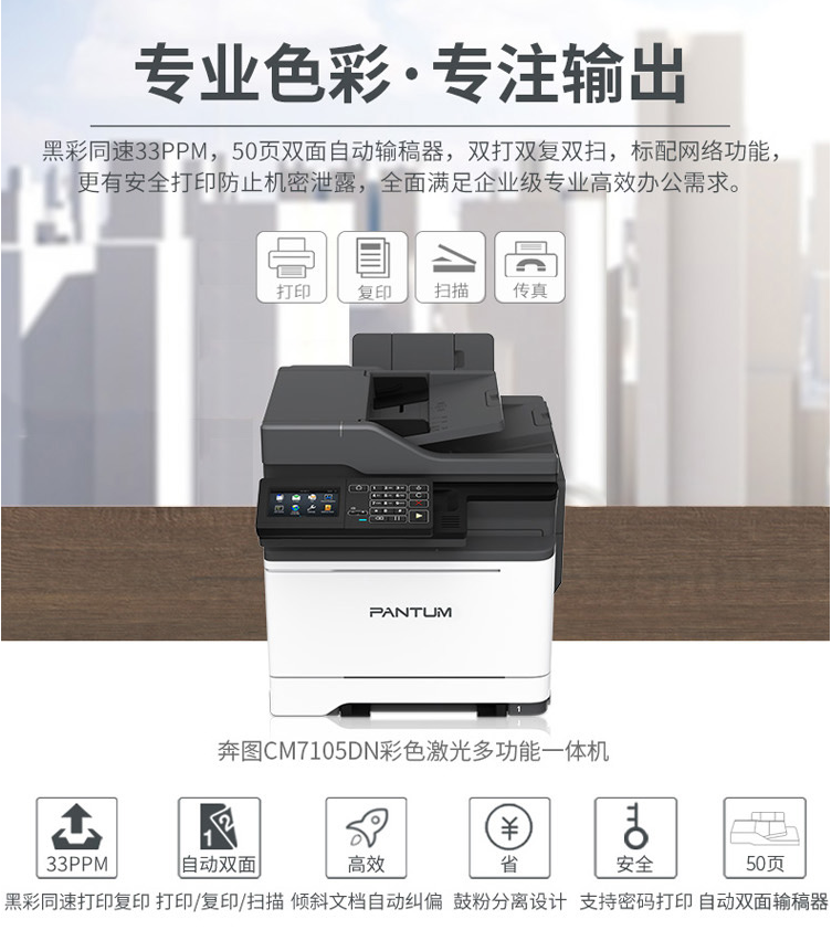 商品名稱:奔圖(PANTUM) CM7105DN 多功能一體機(jī) 彩色激光打印復(fù)印掃描傳真 自動雙面