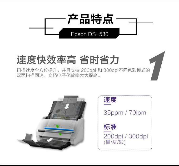 商品名稱:愛普生(EPSON)DS-530 掃描儀  A4高速饋紙式掃描儀 高清掃描 支持長紙掃描