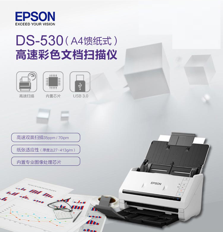愛普生(EPSON)DS-530 掃描儀 A4高速饋紙式掃描儀 高清掃描 支持長紙掃描