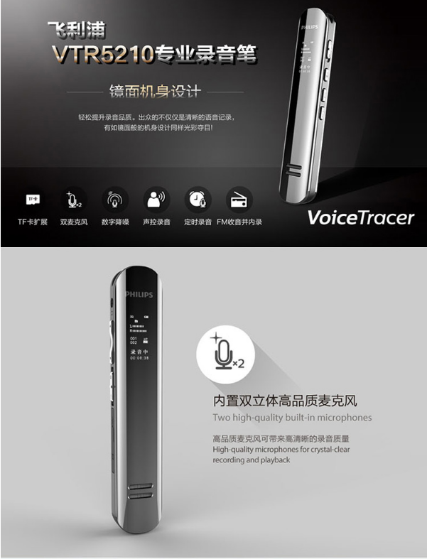 商品名稱:飛利浦(PHILIPS)VTR5210 錄音外圍設(shè)備 錄音筆 16G內(nèi)存可擴(kuò)展 會(huì)議采訪 數(shù)字降噪 雙麥克風(fēng)數(shù)碼鋰電錄音筆