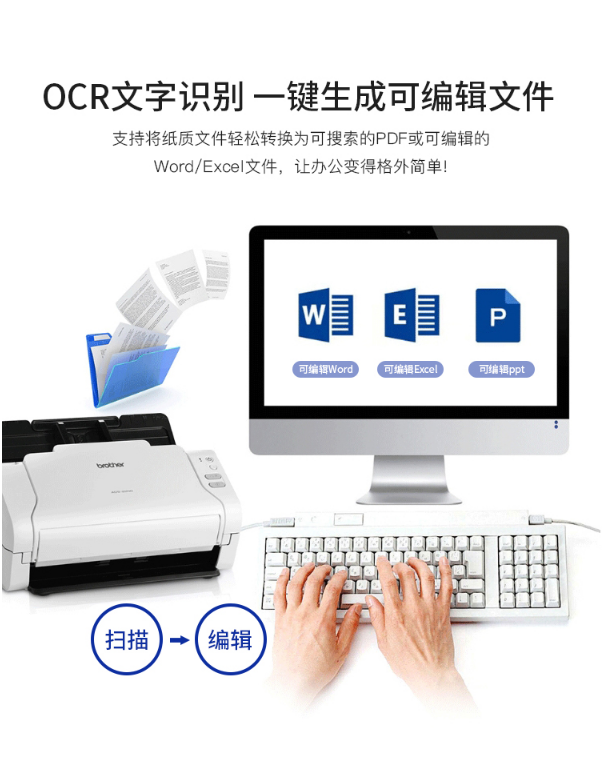 兄弟(brother)ADS-2200 掃描儀 高速饋紙式掃描儀A4紙支持U盤掃描證卡掃描自動(dòng)雙面