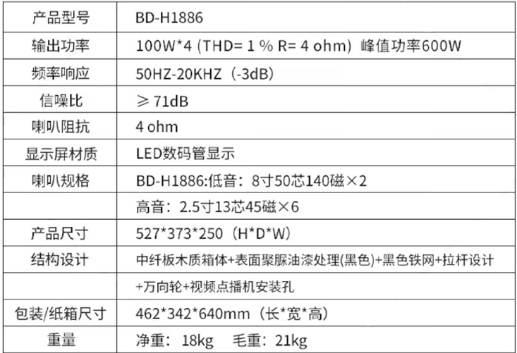 商品名稱(chēng):貝德 BD-H1886 音箱  便攜式拉桿移動(dòng)藍(lán)牙音箱