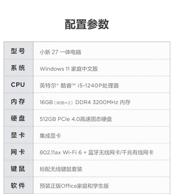 商品名稱:聯(lián)想(Lenovo) AIO520-27 臺式計算機 小新一體臺式機電腦27英寸(12代 i5-1240P 16G 512G SSD win11)白色